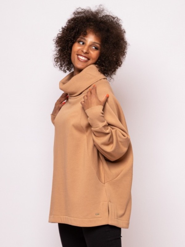 Ez a női pulóver alap darab őszi-téli ruhatárunkban! Bővebb szabásával, denevér ujjával, garbójával és kis márkajelzéseivel egész szezonban viselheted. Rugalmasságával és magas pamut tartalmával igazán kényelmes darab a mozgalmasabb időszakokban is. Nagyszerű választás a rohanós hétköznapokra, városi sétákra. Válaszd hozzá kedvenc Heavy Tools farmeredet és cipődet az új kollekcióból! Anyaga: 60% pamut, 40% poliészter, belül bolyhozott fleece. A modell 175 cm magas és M-es méretet visel.