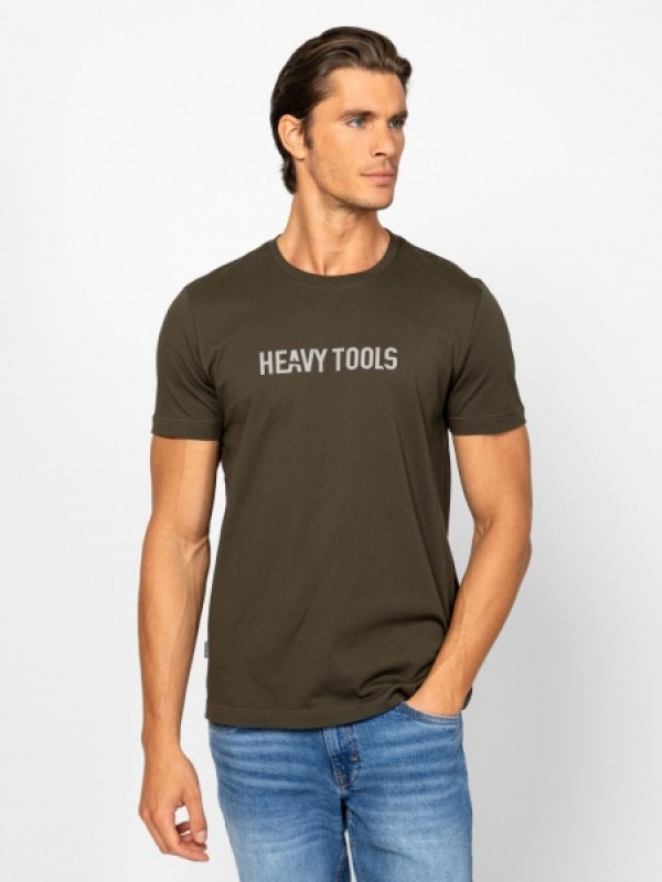Férfi rövid ujjú póló, egyenes szabással, kerek nyakkal, elején nagy applikált márkajelzéssel, oldalában szövött címkével. Anyaga: 100% pamut, single jersey. A modell 188 cm magas és L-es méretet visel