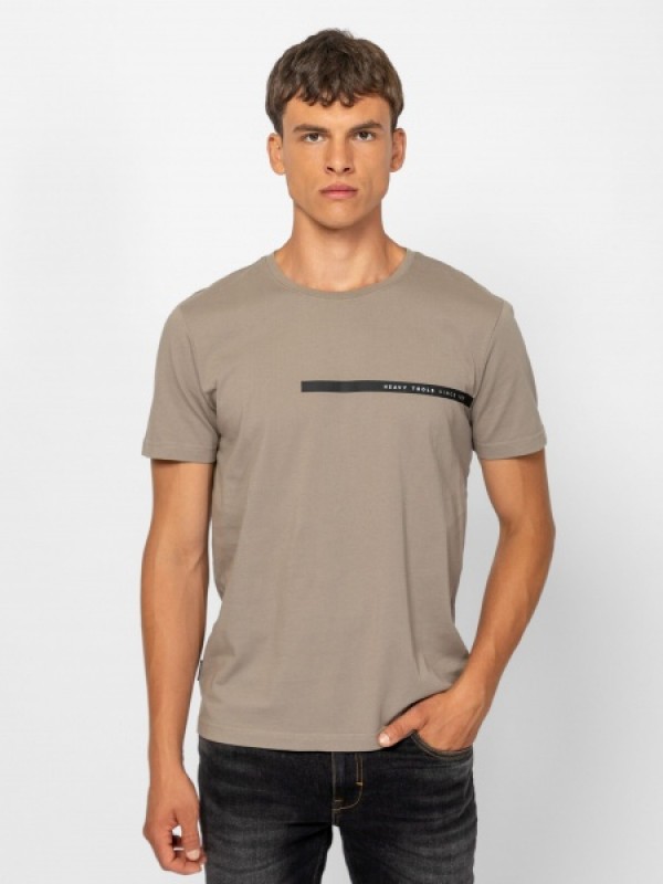 Férfi rövid ujjú póló, egyenes szabással, kerek nyakkal, elején nyomott márkajelzéssel, oldalában szövött címkével. Anyaga: 100% pamut, single jersey. A modell 188 cm magas és L-es méretet visel