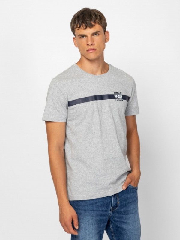 Férfi rövid ujjú póló, egyenes szabással, kerek nyakkal, elején nagy applikált márkajelzéssel, oldalában szövött címkével. Anyaga: 100% pamut, single jersey. A modell 188 cm magas és L-es méretet visel