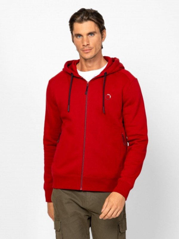Férfi cipzáros, kapucnis pulóver, sportos szabással, bordás passzés kézelővel és aljjal, szabásvonalba helyezett cipzáros zsebbel, kis nyomott márkajelzéssel az elején. Viseld hozzá ZANON melegítőnadrágunkat az új kollekcióból. Anyaga: 80% pamut, 20% poliészter, belül bolyhozott fleece. A modell 188 cm magas és L-es méretet visel
