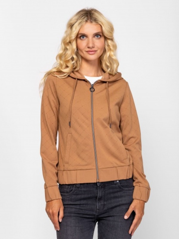 Női, kapucnis felső, cipzáros záródással, kényelmes szabással, egyenes zsebekkel, gumírozott aljjal és kézelővel, logó mintával, viszkózban gazdag, elasztikus anyagból. Viseld hozzá ZAMORKAW25 nadrágunkat az új kollekcióból. Anyaga: 63% viszkóz, 32% nylon, 5% elasztán. A modell 175 cm magas és S-es méretet visel