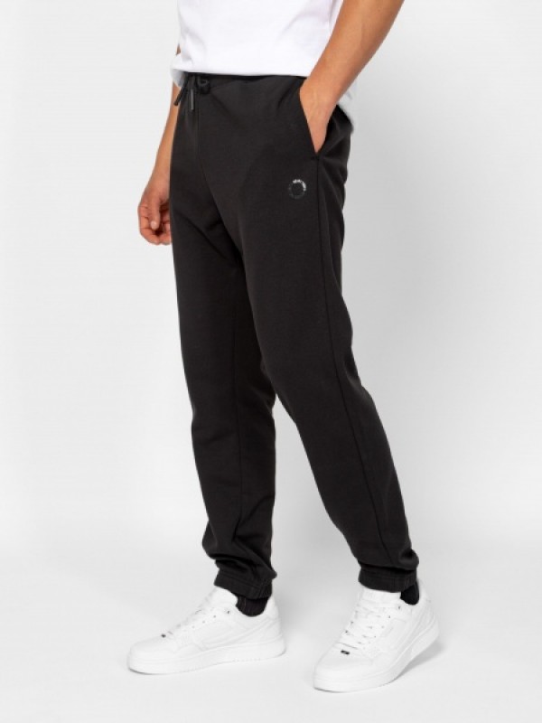 Férfi melegítőnadrág, kényelmes szabással, lefelé szűkülő szárral, húzózsinórral állítható, elasztikus derékkal, zsebekkel, jól szellőző anyagból, kis márkajelzéssel az elején. Anyaga: 80% pamut, 20% poliészter, belül bolyhozott fleece. A modell 188 cm magas és M-es méretet visel