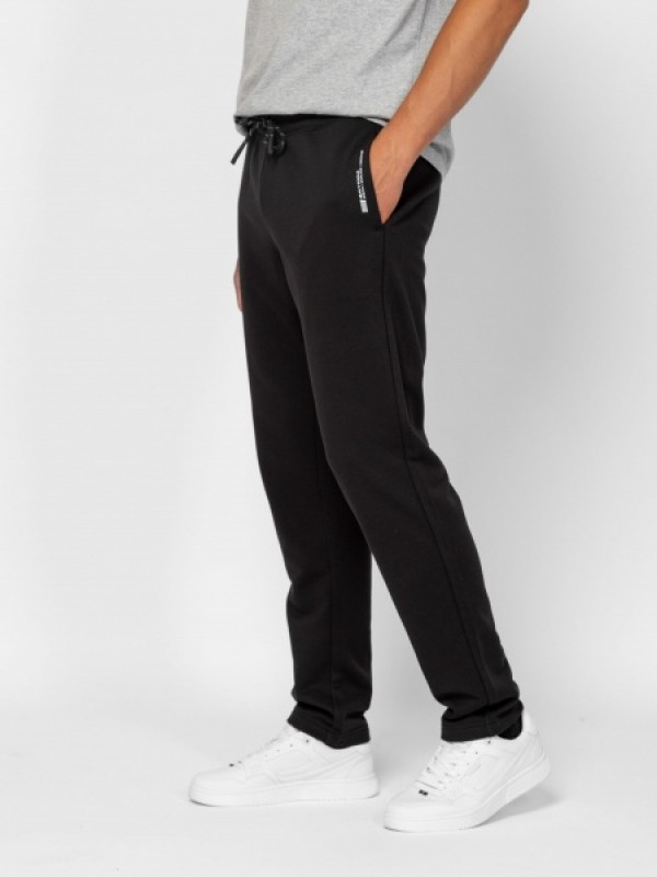 Férfi melegítőnadrág, kényelmes szabással, lefelé szűkülő szárral, húzózsinórral állítható, elasztikus derékkal, zsebekkel, hátán díszzsebbel, jól szellőző anyagból, kis márkajelzéssel az eleje zsebnél. Anyaga: 80% pamut, 20% poliészter, belül bolyhozott fleece. A modell 188 cm magas és M-es méretet visel